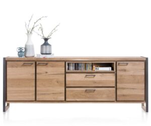 Avalon, buffet 200 cm – 4-portes + 1-tiroir + 1-porte en verre (+ LED) – natural