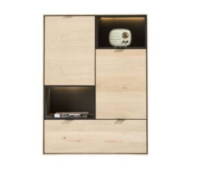 Avalon, armoire 96 cm – 3-portes + 1-tiroir + 1-porte en verre (+ LED) – natural