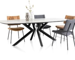 Tafelcollectie Carreras heeft een atypische vorm van tafelblad met golvende lijnen en lijkt op een tafel met boomstamvorm. Het tafelblad is echter gemaakt van hoogwaardig Primo Laminato (HPL), een materiaal dat erg op hout lijkt, maar veel onderhoudsvriendelijker is. De tafels zijn beschikbaar met twee verschillende onderstellen, bestaan in 4 verschillende formaten en je kiest zelf of je een eetkamertafel of bartafel wilt. Keuze genoeg dus in deze tafelcollectie! Hier zie je de bartafel met een hoogte van 92cm en een tafelblad van 210x100cm.