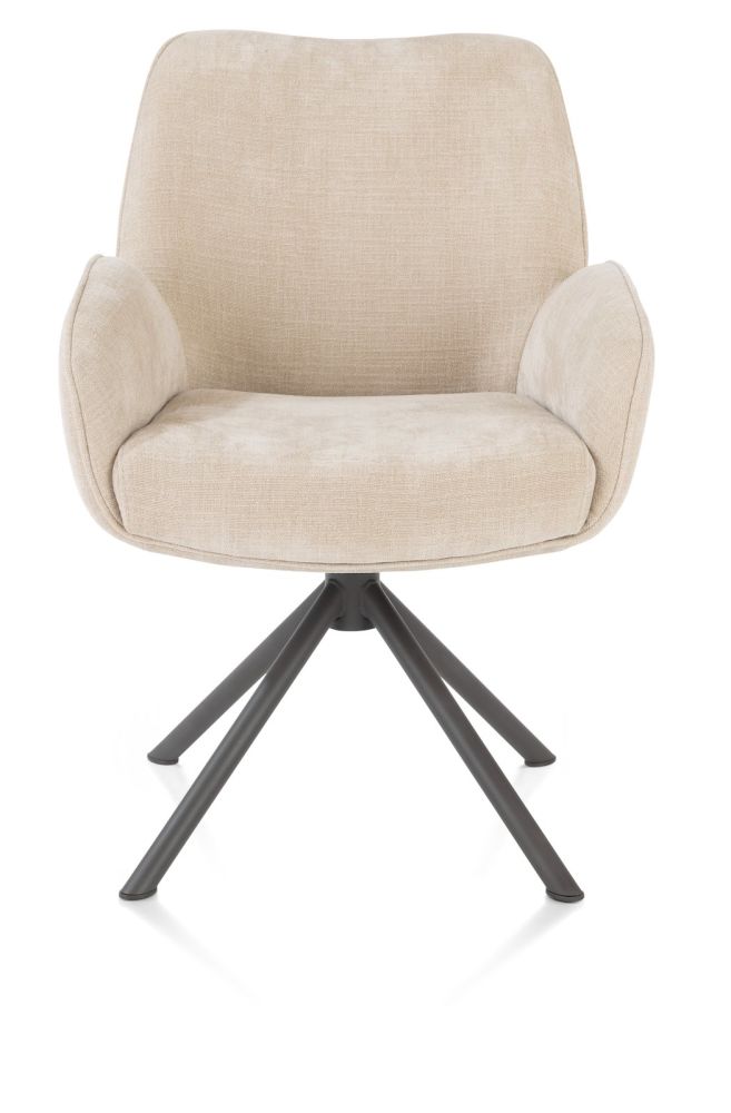 Riley, armstoel 4-poots grafiet frame met relaxsysteem – draaibaar + pocket – stof Cadiz – Creme
