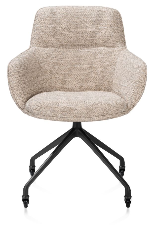 Armstoel Mateo van Henders & Hazel biedt de perfecte mix van comfort en stijl. Met zijn elegante vormgeving voegt hij moeiteloos een vleugje klasse toe aan elk interieur – of je nu gaat voor modern en strak of eerder warm en tijdloos. Het slanke silhouet, de verfijnde stiksels en de zachte, luxueuze bekleding zorgen voor een uitnodigende uitstraling en ultiem zitcomfort.Dankzij de ergonomisch gevormde rug en zitting zit je ook tijdens lange diners heerlijk ontspannen. Mateo is meer dan zomaar een stoel – het is een stijlvolle plek om te genieten van elk moment aan tafel.Je stelt Mateo volledig naar wens samen: kies uit een ruim aanbod aan stoffen, kleuren, armleuningen en onderstellen – van vaste poten tot wieltjes of een draaivoet. Deze variant is uitgevoerd met een draaipoot op wielen. Een subtiele blikvanger die elegantie en comfort samenbrengt in je eetkamer.
