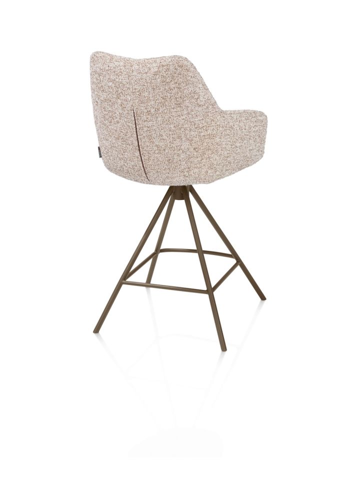 deze barstoel MATS staat op een metalen 4-poot onderstel in de kleur steelbrown. De draaifunctie zorgt ervoor dat de zitting 360 graden draaibaar is, wat het gebruik aan je bartafel comfortabel maakt. De stof Luton in de warme kleur koper voelt zacht aan en geeft de barstoel een stijlvolle uitstraling.